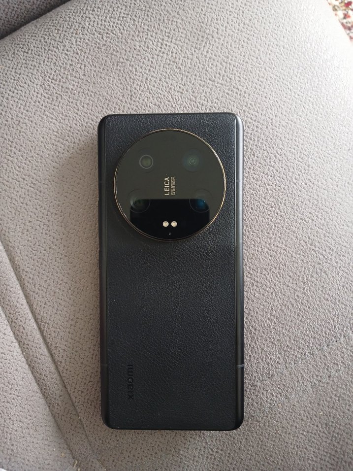 YURT DIŞI OLUP DİRENÇLİ İMEİL ATILMIŞTIR Siyah Xiaomi Android telefon, arka yüzünde çoklu lenslere sahip büyük dairesel Leica kamera modülü bulunur. Koyu renkli ve dokulu yüzeye sahiptir.