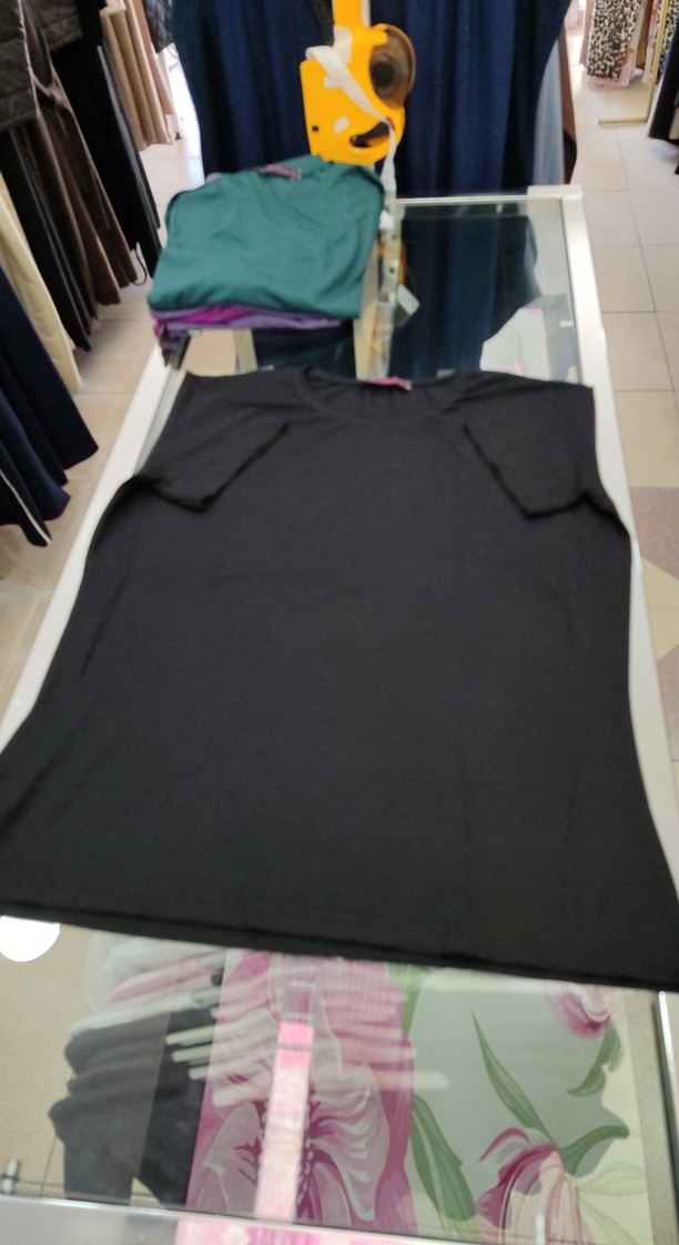 Siyah renkte, yuvarlak yaka ve kısa kollu, salaş kesimli, normal midi boyda kadın tişörtü. Yumuşak sentetik kumaştan, günlük rahat kullanıma uygun, desensiz tasarım. ürün mağaza ürünüdür 5 numara ürün çeşitleri ve renkleri için sayfaya bakın