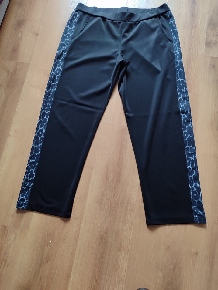 Siyah yan desenli, elastik bel bantlı kadın rahat aşortman takım Orta boy, düz kesim ve sentetik kumaştan üretilmiştir. Günlük dış mekan kullanımı için uygundur.