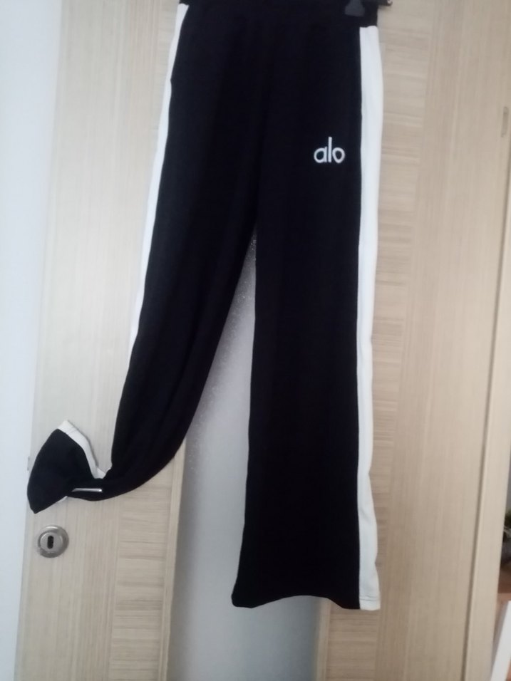 Siyah yan şeritli kız eşofman altı, elastik bel ve yumuşak, sıcak kumaşa sahip. "alo" logosu ile sokak tarzı görünüm sunar.