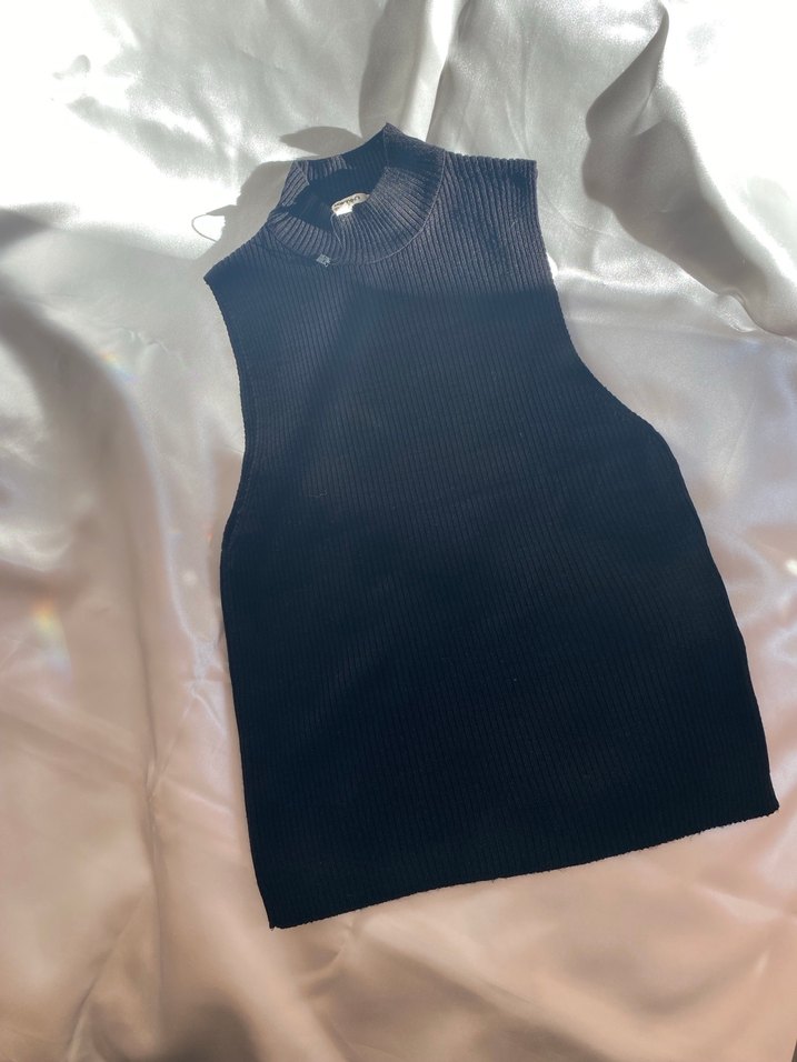 Dar kesim, yarım balıkçı yaka ve kolsuz tasarıma sahip Sentetik kumaştan örülmüş, günlük sokak stili ve athleisure için uygun.