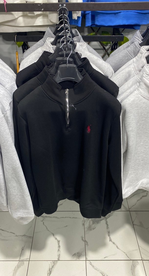 Yarım fermuarlı, uzun kollu ve bisiklet yaka erkek sweatshirtü. Yumuşak ve sıcak kumaştan, bol kesim ve koyu siyah renkte, günlük rahat kullanım için uygundur.