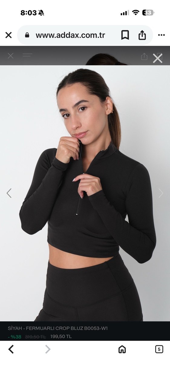 Yarım fermuarlı yüksek yakalı, uzun kollu siyah mini crop top. Düz sentetik kumaştan, sportif ve sokak stiline uygun, şık ve rahat bir tasarım.