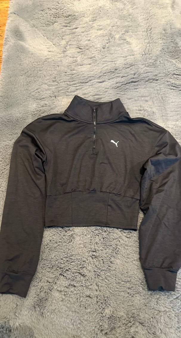 Yarım fermuarlı, yüksek yakalı siyah sweatshirt, uzun kollu ve crop boy. Yumuşak ve sıcak kumaştan, spor ve sokak stiline uygun. ♀️