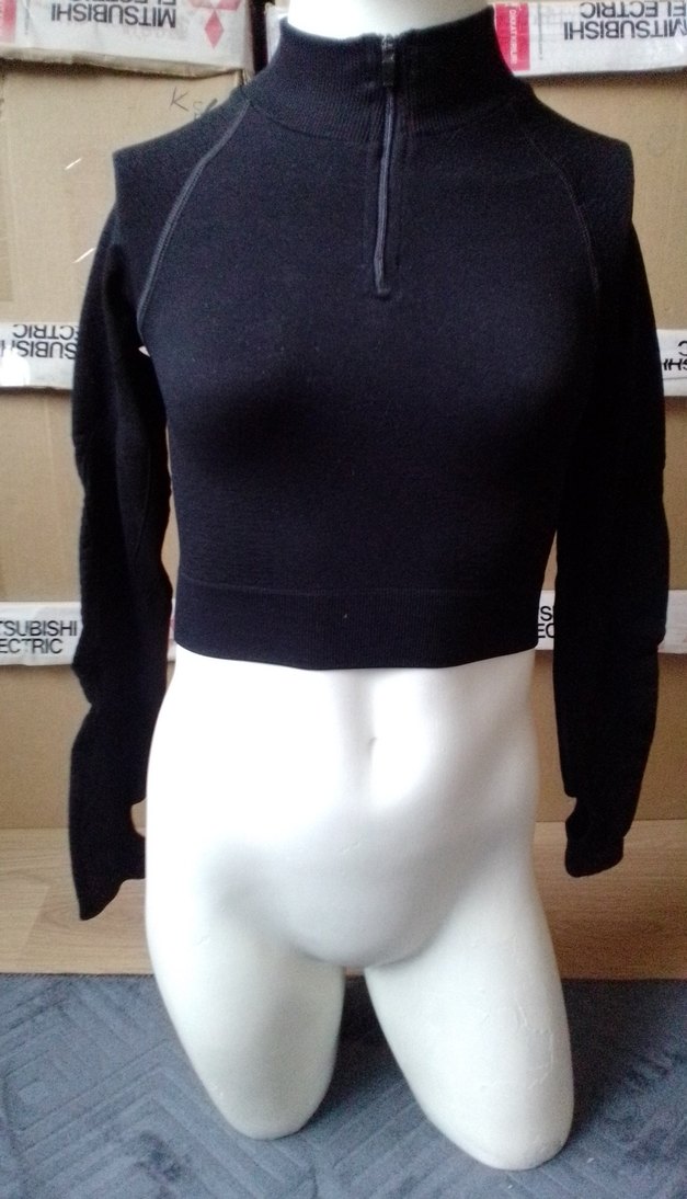Yarım fermuarlı yüksek yakalı, uzun kollu, siyah fitted kadın sweatshirt. Yumuşak fleece kumaştan, midi boyda, spor ve sokak stili için uygun. likralı crop bluz sorunsuz S beden uyumlu arkadasimin