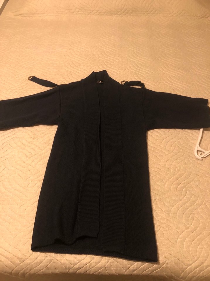 Siyah, yarım kollu, vücuda oturan kadın hırka, rahat ve gotik tarzıyla dikkat çeker. Uzun boyu ile sıcaklık sağlar.