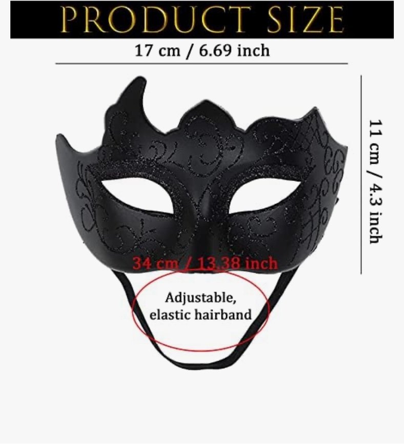 Masquerade maskeli balo için uygun siyah yarım erkek maskesi Hiç kullanılmadı