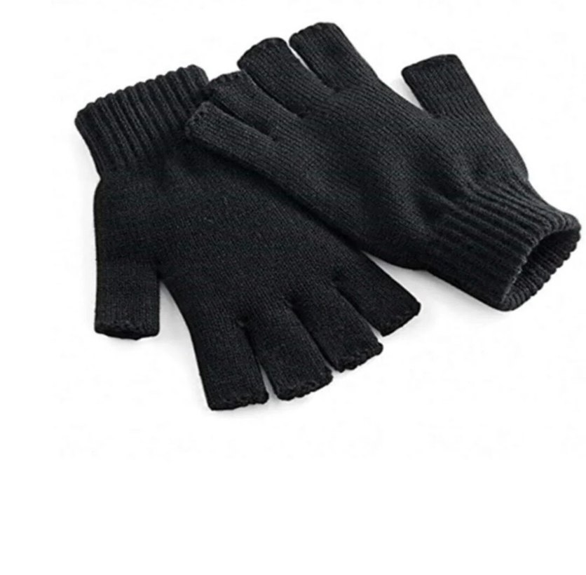 Siyah Yarım Parmak Örgü Yün Eldiven