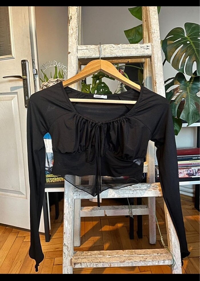 Siyah yarısı dantel bluz