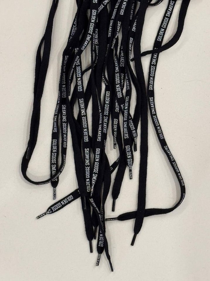 Siyah zemin üzerine beyaz yazılı, erkek spor ayakkabıları için uygun bağcıklar. Sokak stili ve athleisure tarzına uyum sağlar.