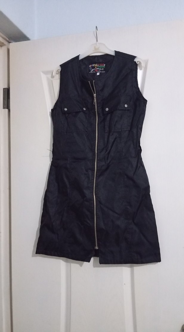 siyah kolsuz önden fermuarlı satene benzer kumaşlı Yelek uzun
