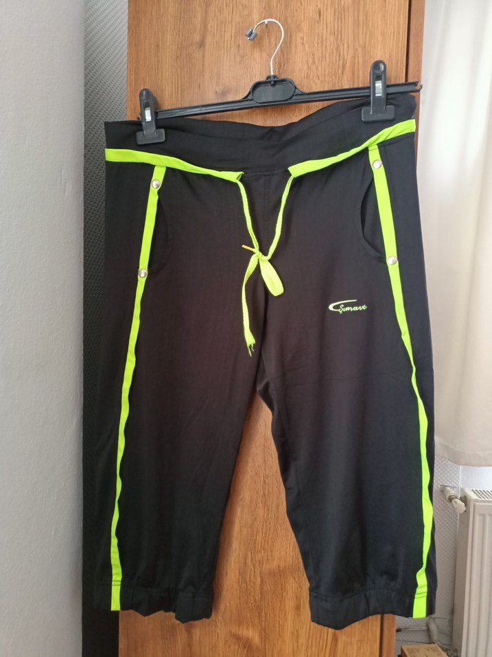 Siyah renkte, yeşil yan şeritlere sahip, bol kesim spor kapri. Elastik bel ve yumuşak sentetik kumaştan üretilmiştir. ♀️ boy 68 cm. lastik kemerli bel 43 cm.x2=86 cm kalça 56 cm.x2=112 cm. likralıdır