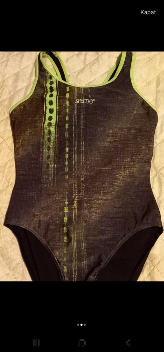 Fitted kesim, kolsuz kadın mayo; siyah-yeşil desenli, spor ve athleisure tarzına uygun, Speedo marka. ♀️