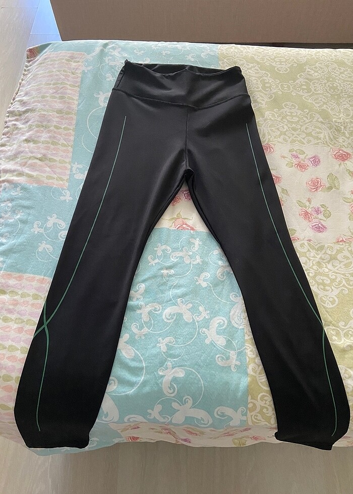 Siyah yeşil şeritli tayt