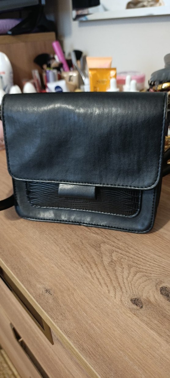 Siyah Yılan Derisi Desenli Deri çanta