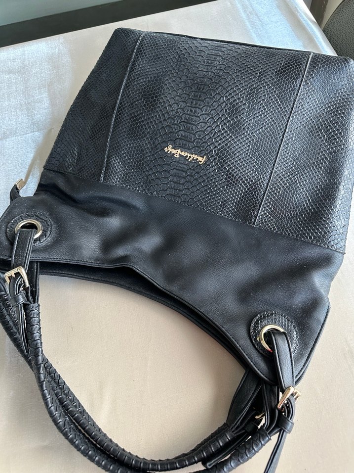 Siyah Yılan Derisi Desenli Deri Kadın Çanta