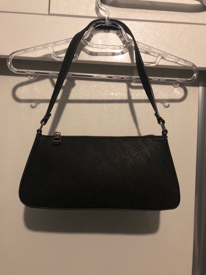 Siyah deri kadın çanta, yılan derisi deseni ve tokalı detaylarıyla minimalist ve gotik tarzı yansıtıyor. Günlük kullanım için uygun, klasik şıklık sunar..