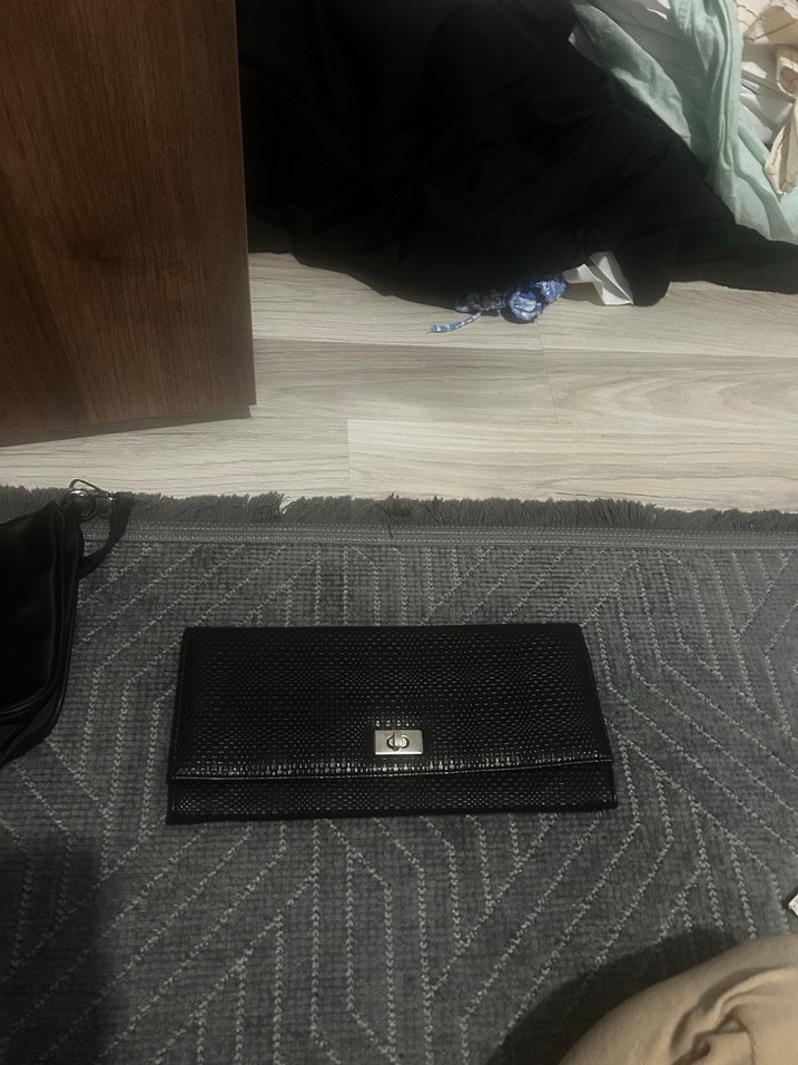 Siyah Yılan Derisi Desenli Deri Kadın Portföy Çanta