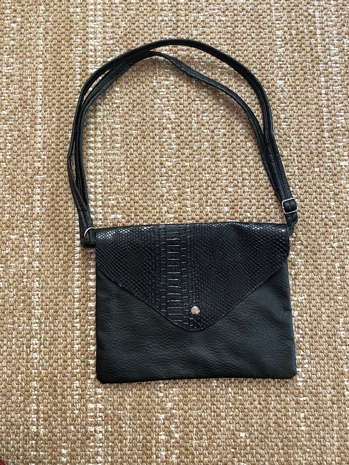 Siyah Yılan Derisi Desenli Deri Omuz Çantası