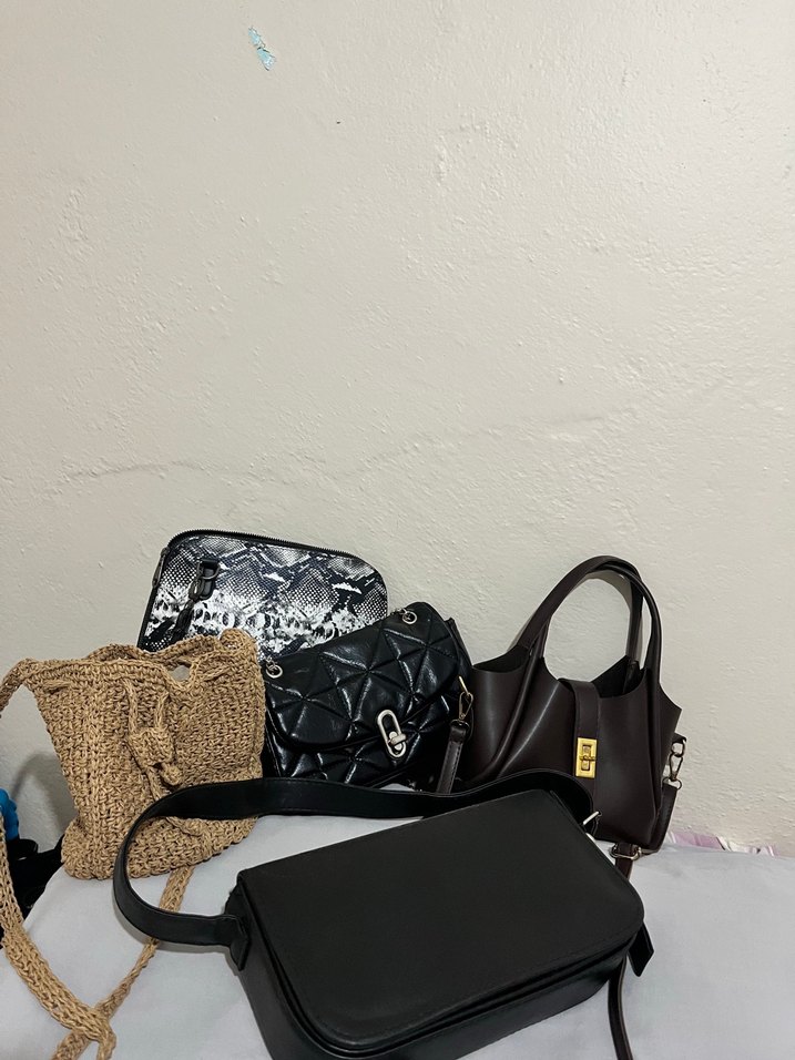 Deri malzemeden yapılmış, siyah yılan derisi desenli, tokalı kadın çantası. Sokak stiline uygun.