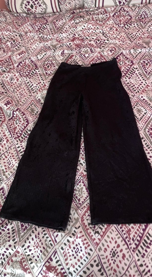 Uzun siyah kadın pantolon, bol kesim, yılan derisi detaylı ve hafif batik desenli, romantik akşamlar için uygun, trendi ve rahat tarzda.