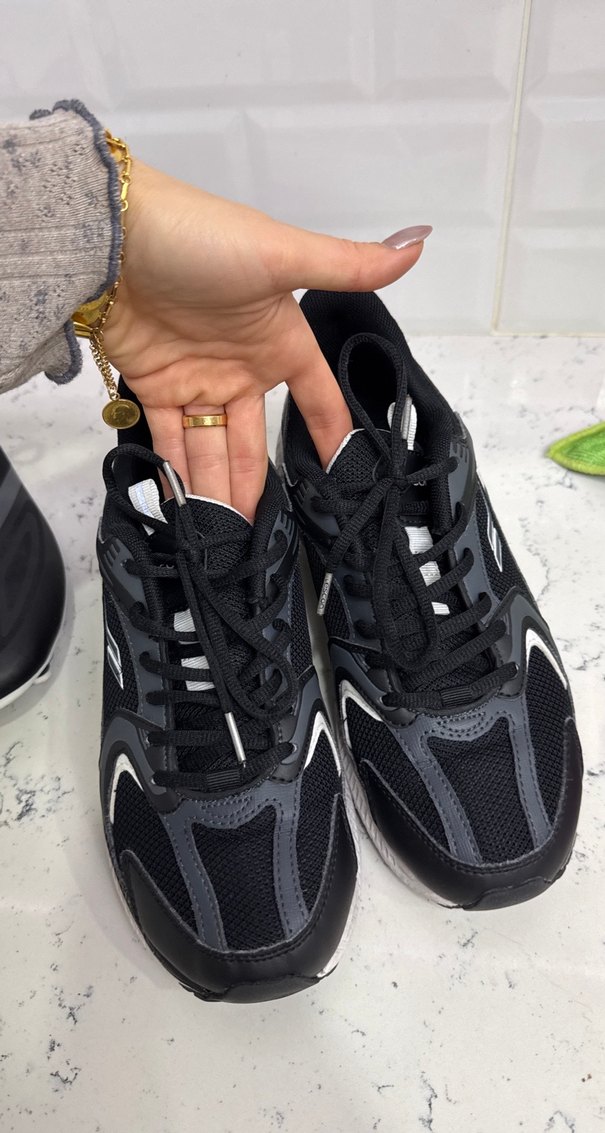 Siyah Yılan Desenli Bağcıklı Kadın Spor Ayakkabı