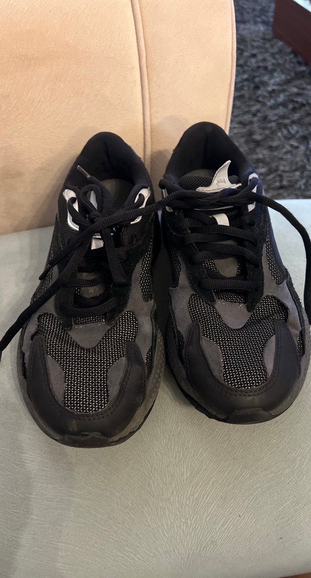 Siyah ve gri yılan desenli, bağcıklı, spor ayakkabısı. Kauçuk tabanlı, sokak modası ve sportif tarzı bir arada sunar.