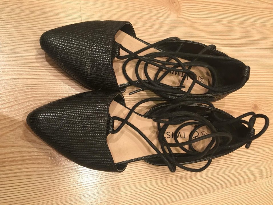 2 kere giyildi büyük geldi temizdir Esnek kauçuk malzemeden yapılmış, yılan desenli dokusu ve bağcıklı tasarımıyla siyah stiletto sandalet. Gotik ve Paris tarzıyla romantik akşamlar için ideal.