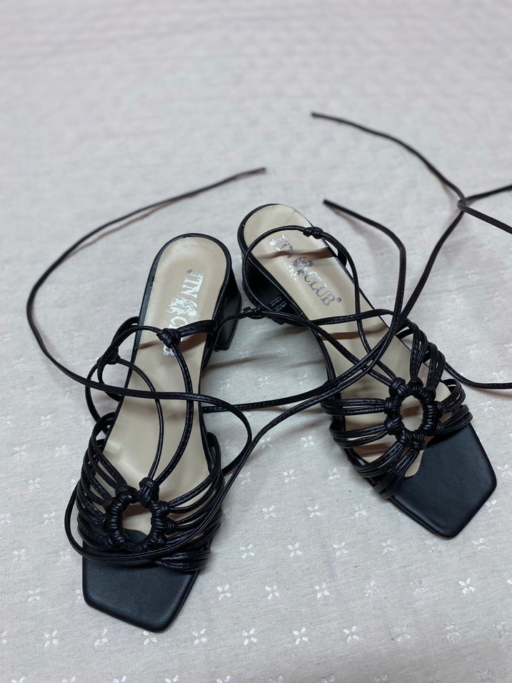 Siyah yılan desenli, bağcıklı ve kauçuk malzemeden yapılmış stiletto topuklu sandalet. Gotik tarz ve Paris etkisiyle günlük kullanıma uygun.