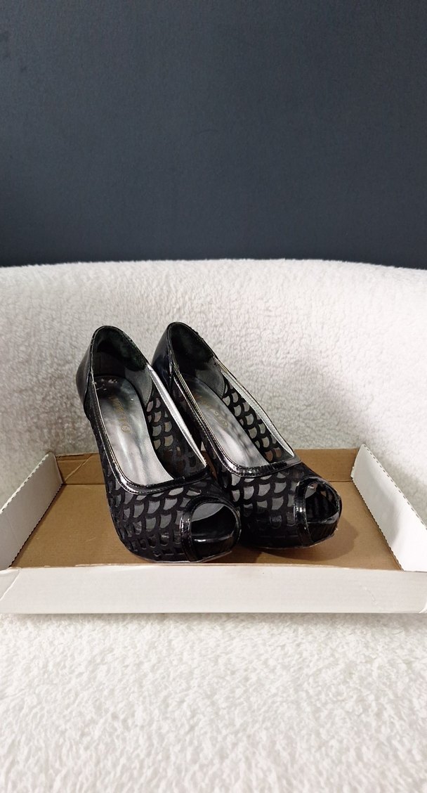 Yılan desenli, dantel detaylı siyah platform topuklu ayakkabılar, kauçuk tabanlı. Romantik gece için gotik klasik tarzda uygun.