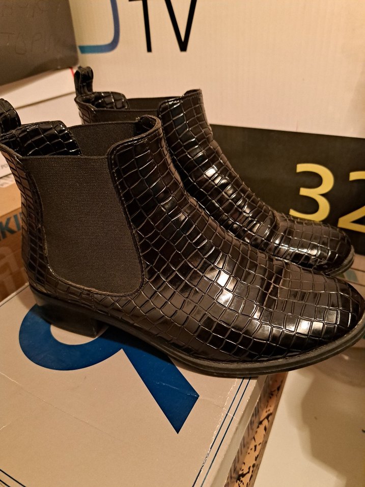 Siyah deri yılan desenli kadın botu,günlük stil için uygun.