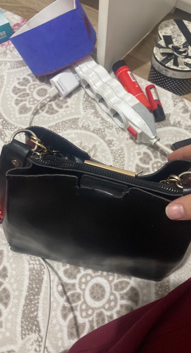 Klasik şıklık ve gotik stilin birleştiği, fermuarlı kapamalı siyah yılan desenli deri kadın çanta. Günlük kullanıma uygundur.