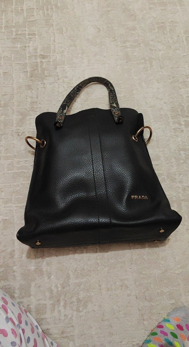 Sokak stiline uygun siyah deri kadın çanta, yılan desenli saplar ve tokalı detaylara sahip.