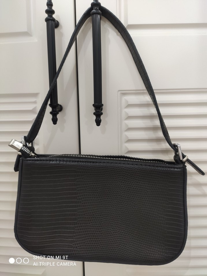 Siyah Yılan Desenli Deri Kadın Çanta