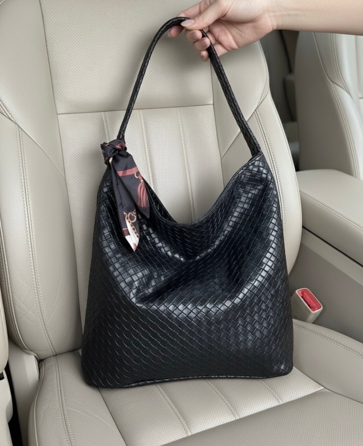 Siyah Yılan Desenli Deri Kadın Çanta