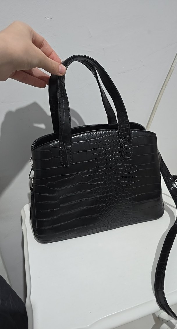 Siyah yılan desenli deri çanta, lc waikikinindir. resimde görüldüğü üzere fermuae kısmında sökülme vardır. dış derisinde soyulma yırtık vs yoktur. iç astarıda sağlamdır. temiz kullanıldı.