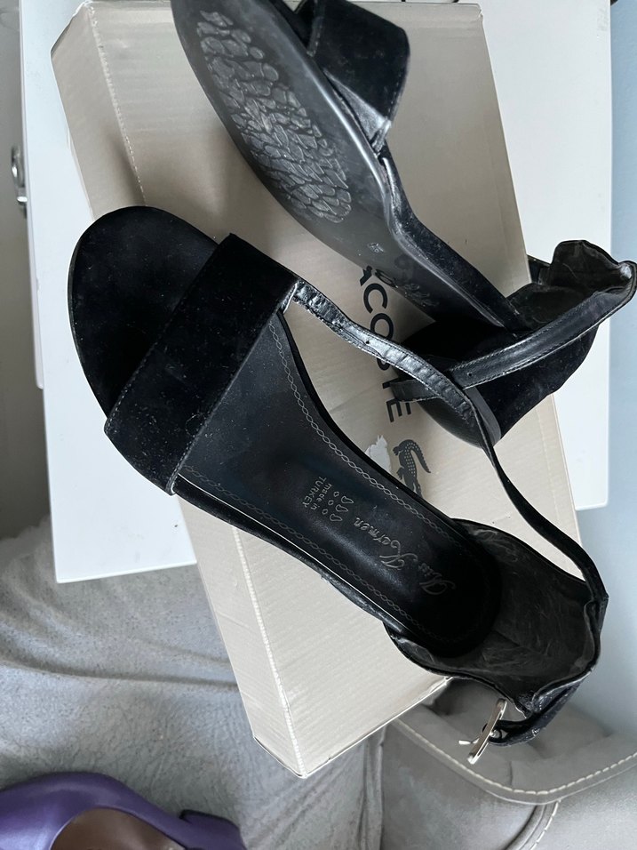 Yılan desenli, tokalı siyah dolgu topuklu kadın ayakkabısı. Gotik ve minimalist tarzı bir araya getirir, romantik akşamlar için uygun.