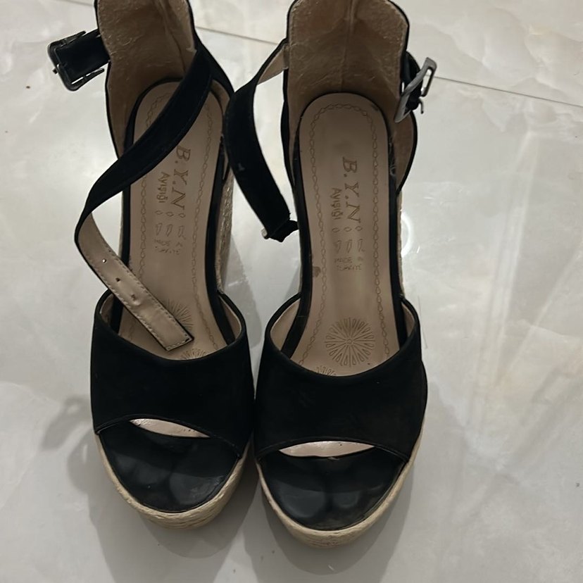 Siyah Yılan Desenli Dolgu Topuklu Kadın Ayakkabı