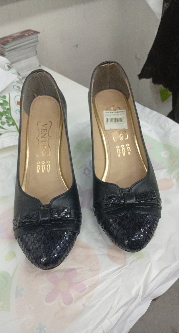Ofis için uygun, siyah yılan desenli ve bağcıklı dolgu topuklu kadın babet. Rahatlık sağlayan kauçuk taban kullanılmış.