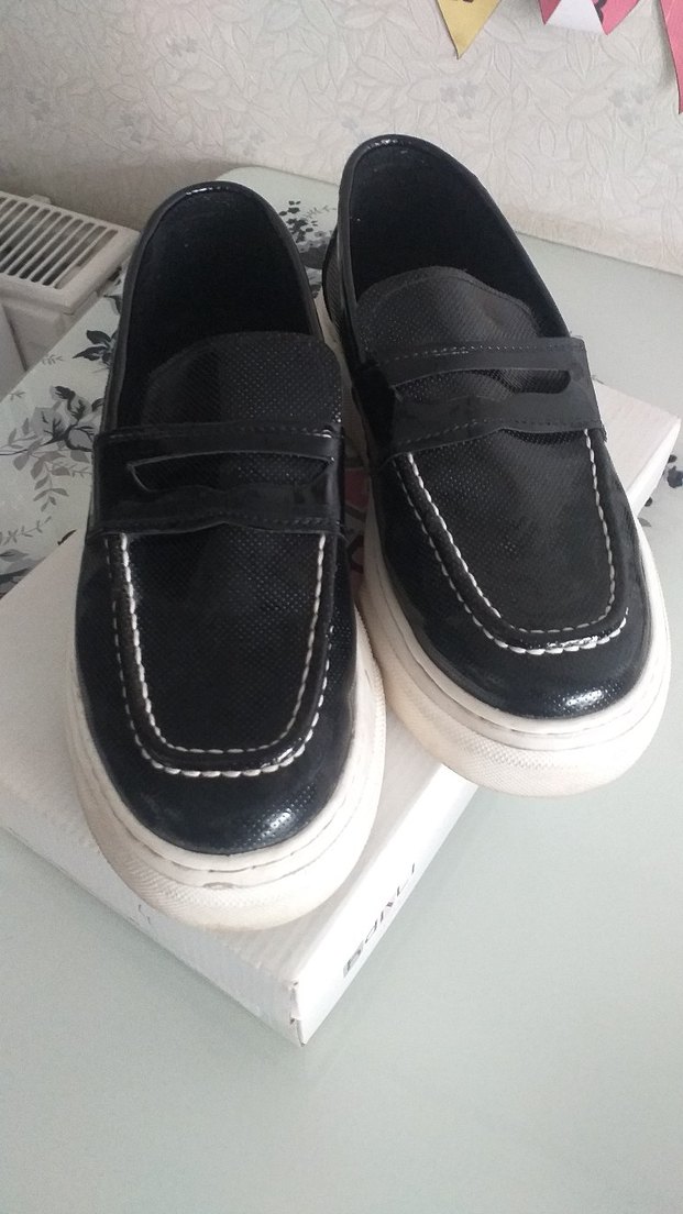 Siyah renkte, yılan desenli ve tokalı detaylı kauçuk erkek çocuk loafer. Beyaz dikiş ve kalın beyaz taban bulunur, trend sokak stiline uygundur.