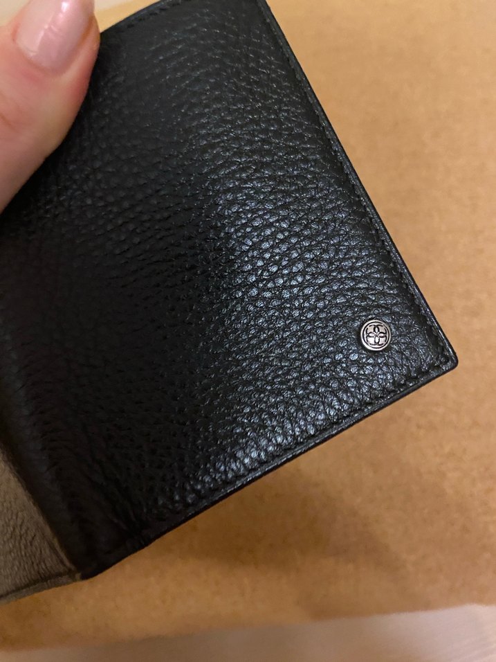 Siyah hakiki yılan desenli, dokulu yüzeye sahip erkek cüzdanı, küçük metalik logo detayıyla klasik ve çağdaş tarzı birleştirir.