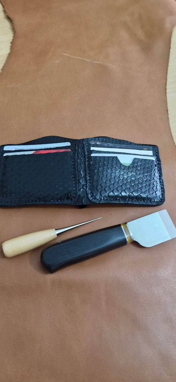 Siyah Yılan Desenli Erkek Cüzdanı el yapımı
