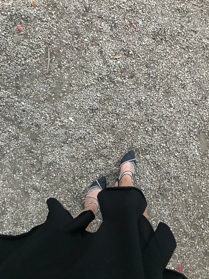 Siyah yılan desenli, fırfırlı, kauçuk malzemeden yapılmış stiletto topuklu ayakkabı. Avant-garde ve normcore tarzını günlük kullanıma taşıyor.