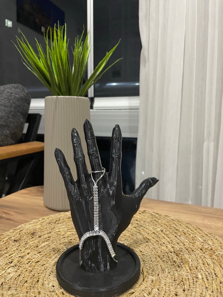 Zincir detaylı, yılan desenli siyah el zinciri. Gotik tarzda, düğün ve şık kombinler için uygundur.
