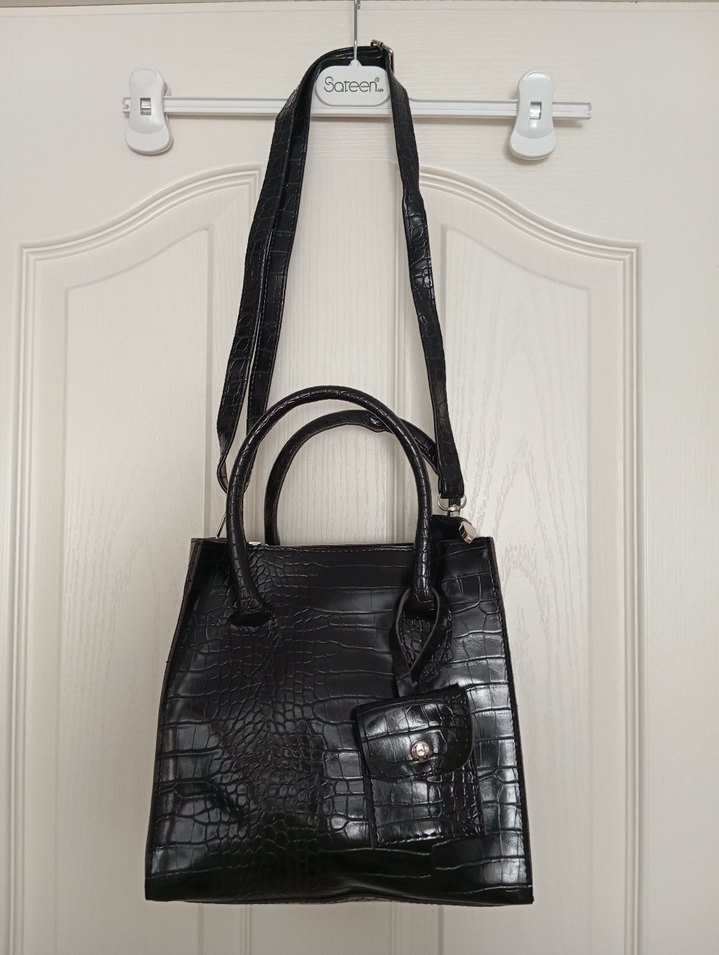 Siyah Yılan Desenli Kadın Deri Çanta