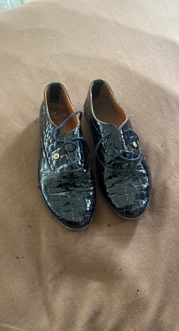 Siyah Yılan Desenli Kadın Rugan Oxford