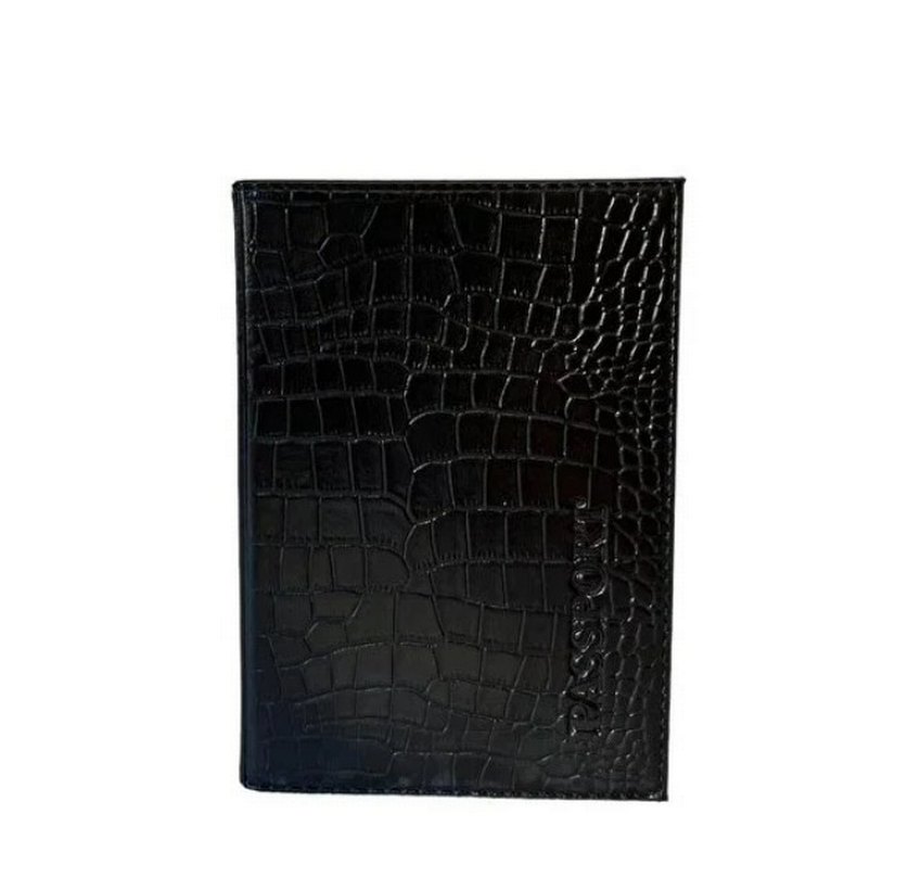 Siyah yılan desenli dokulu pasaport kılıfı minimalist ve sade tarzda tasarlanmıştır.