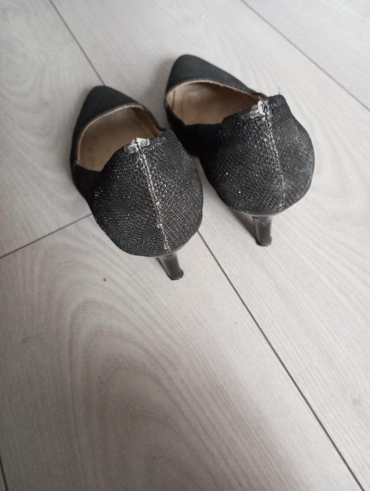 Siyah hafif sim detayli stilettolar, şık kauçuk tabanıyla romantik akşamlar için uygun.