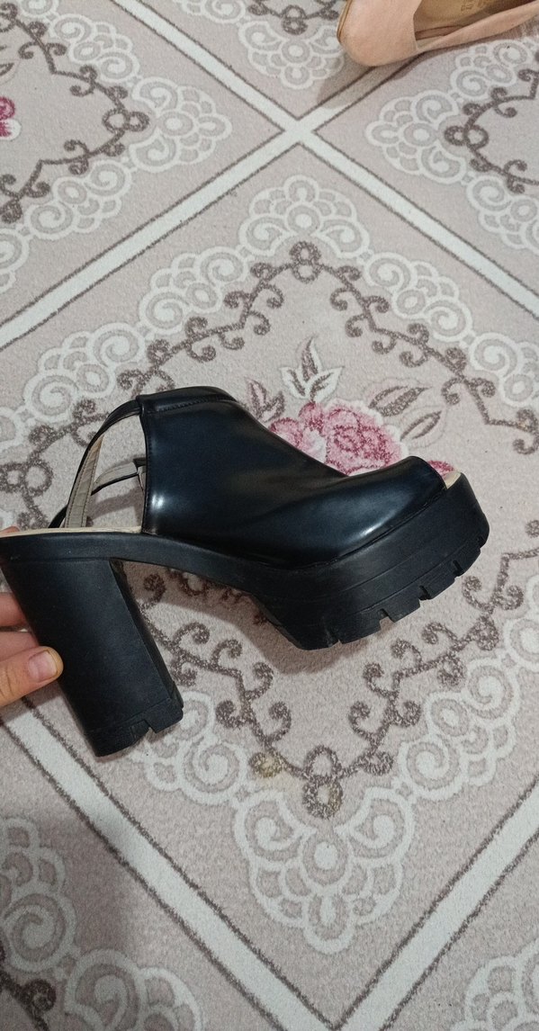 siyah deri kalın topuklu ayakkabı hiçbir defosu yoktur