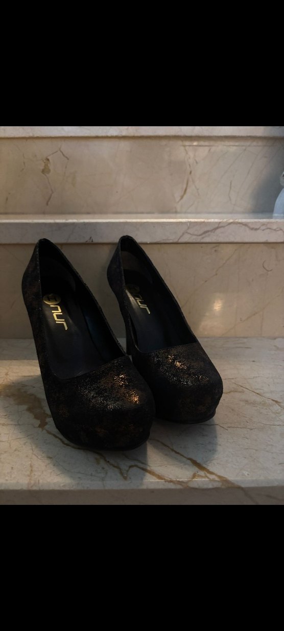 Siyah Yılan Desenli Platform Topuklu Kadın Ayakkabı